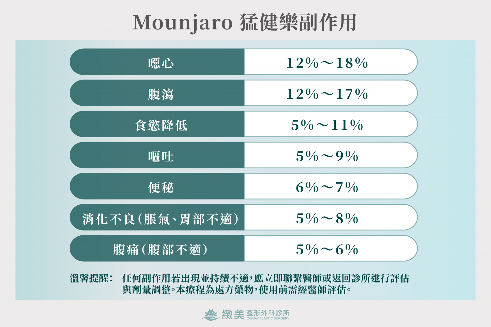 雖然猛健樂(Mounjaro®,tirzepatide)在減重與控糖效果上表現亮眼,但和其他腸泌素類藥物一樣,使用過程中仍可能出現副作用,尤其是腸胃道相關反應最為常見。