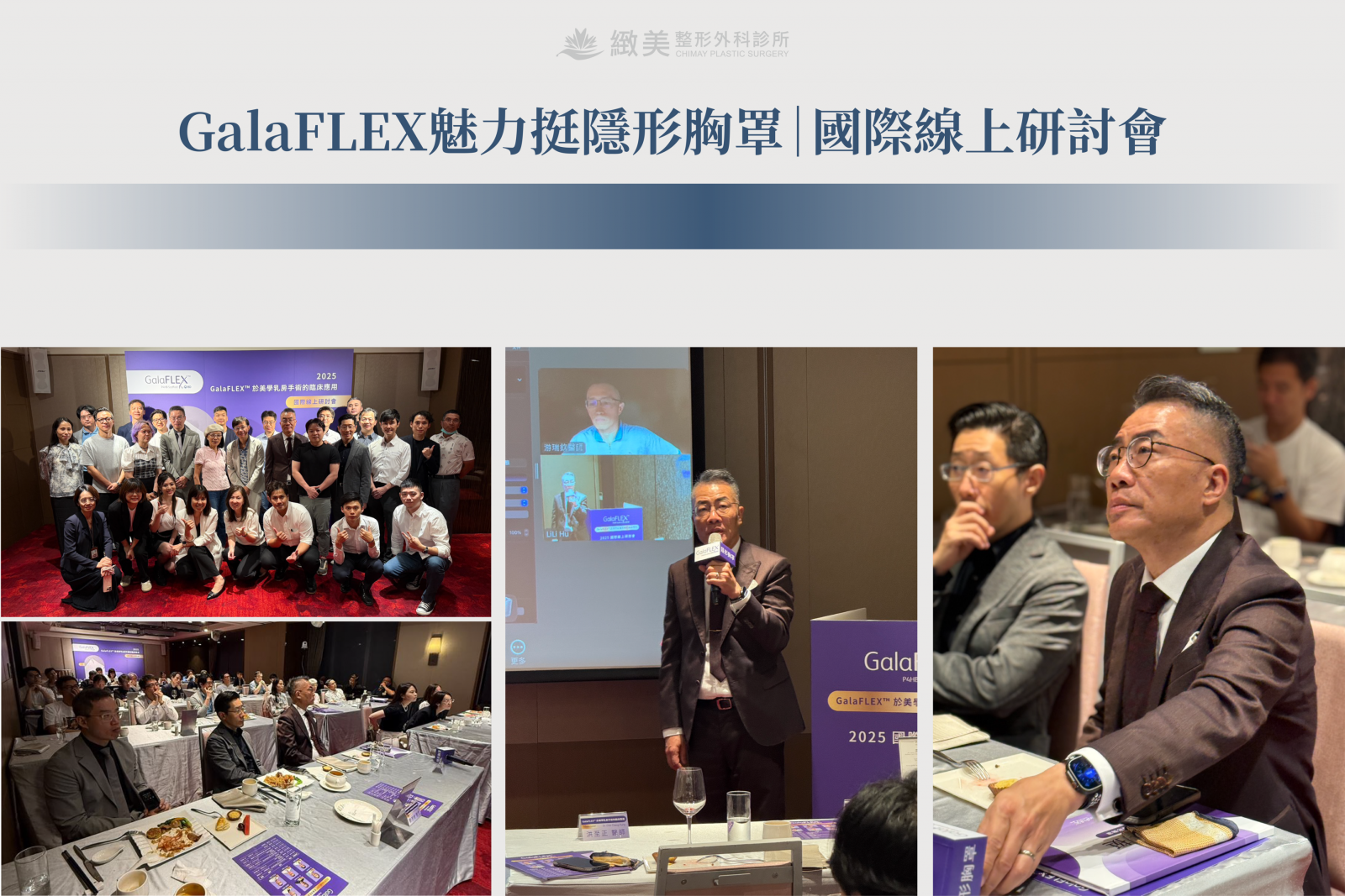 GalaFLEX國際線上研討會,洪醫師以座長身份,與現場多位整形外科醫師以及歐洲專家線上直播,共同交流分享「隱形胸罩GalaFLEX網狀植體」,在乳房整形手術上的臨床應用與未來趨勢;GalaFLEX魅力挺隱形胸罩的出現,在未來的醫療技術與發展都是邁入新的里程碑,讓台灣醫療能持續推動醫療專業進步!!