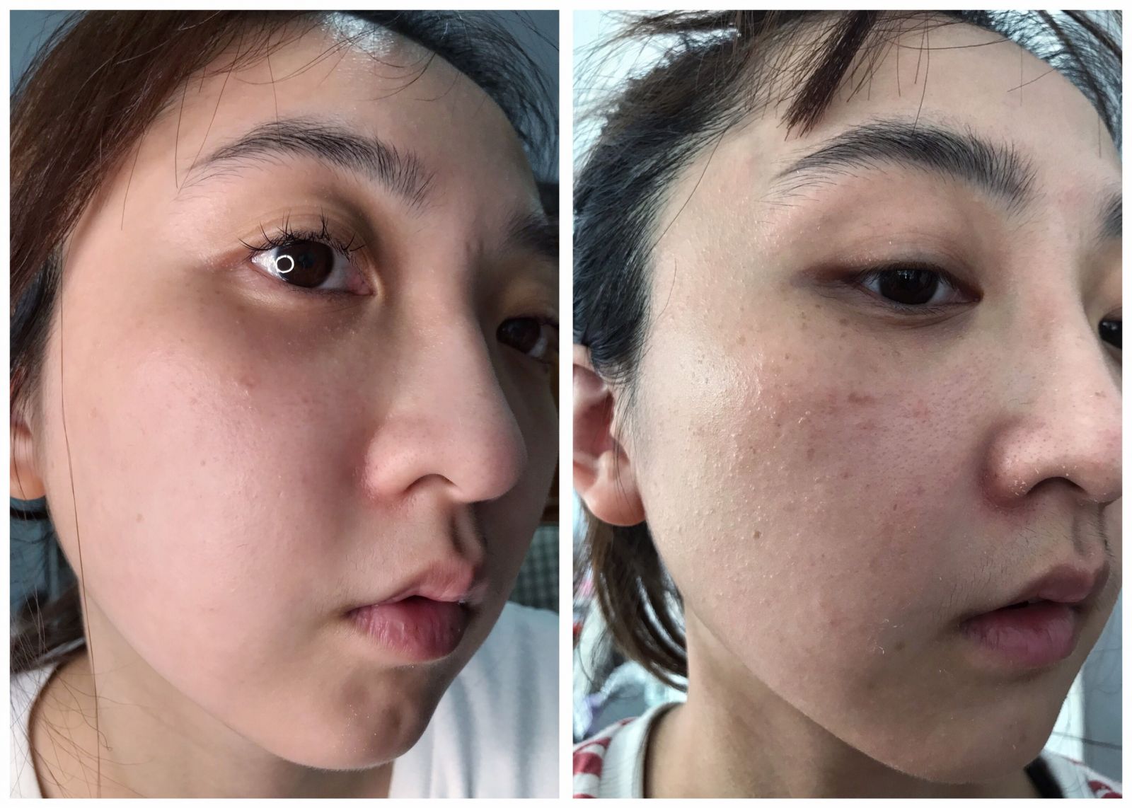 結果就在卸妝的時候,原本因為雷射破皮結痂的地方,居然開始脫落了! OMG~ 皮膚根本像剝完殼的蛋白一樣嫩,心裡的自己驚呼一萬次,撒花灑滿天