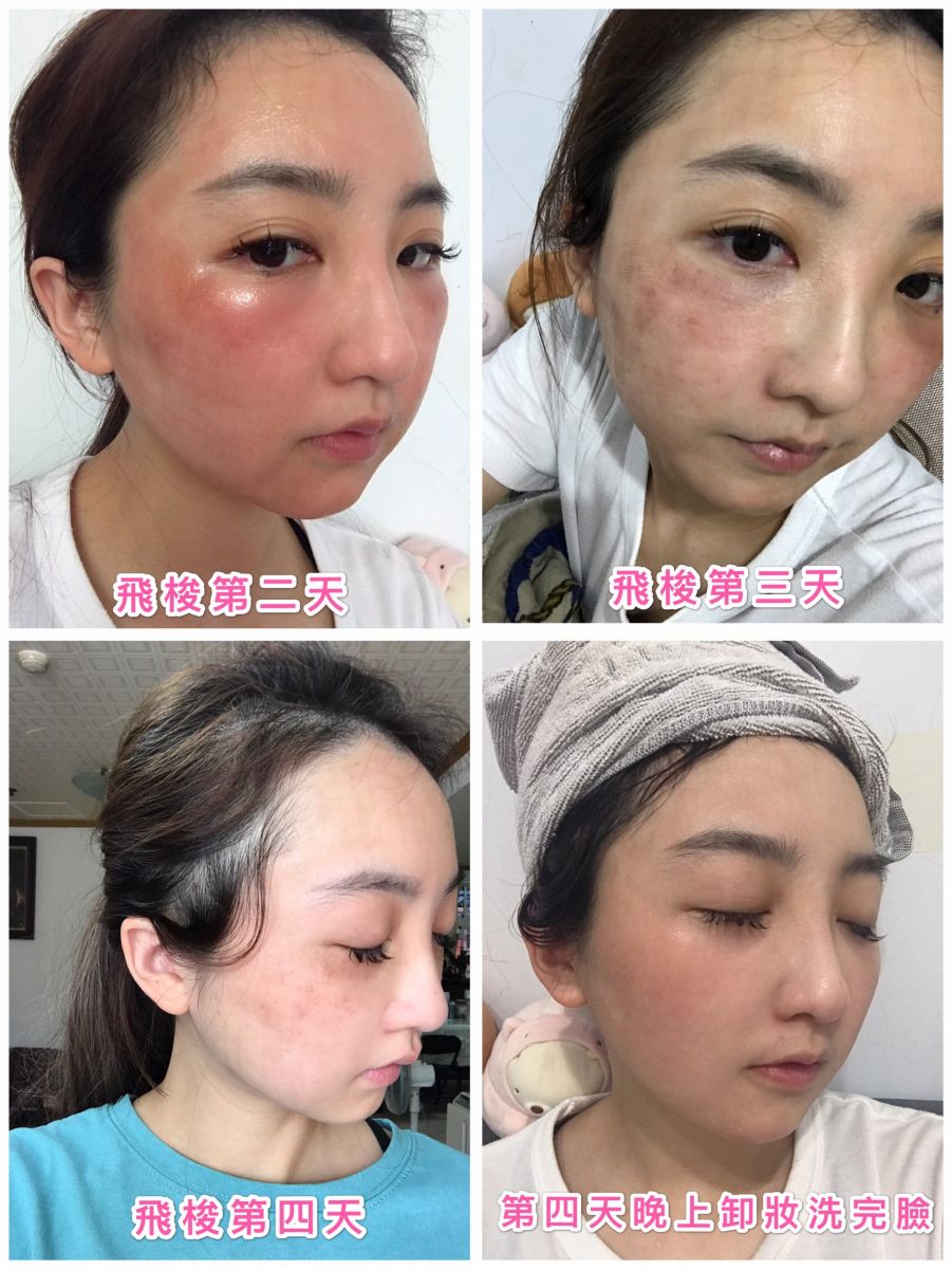 只能用食鹽水洗臉、不能用任何的保養品及化妝、前三天會腫紅也是正常的、就是要勤冰敷多喝水代謝
