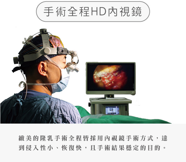 不論由何處植入義乳,醫師都必須先將肌肉組織與皮膚剝離,緻美堅持採用全程高畫質的內視鏡隆乳技術,可藉由外接螢幕監測手術過程,肌肉剝離狀態一覽無遺,降低誤傷神經或剝離過多等風險,因此手術所需時間也較長,相對的費用也會較高。