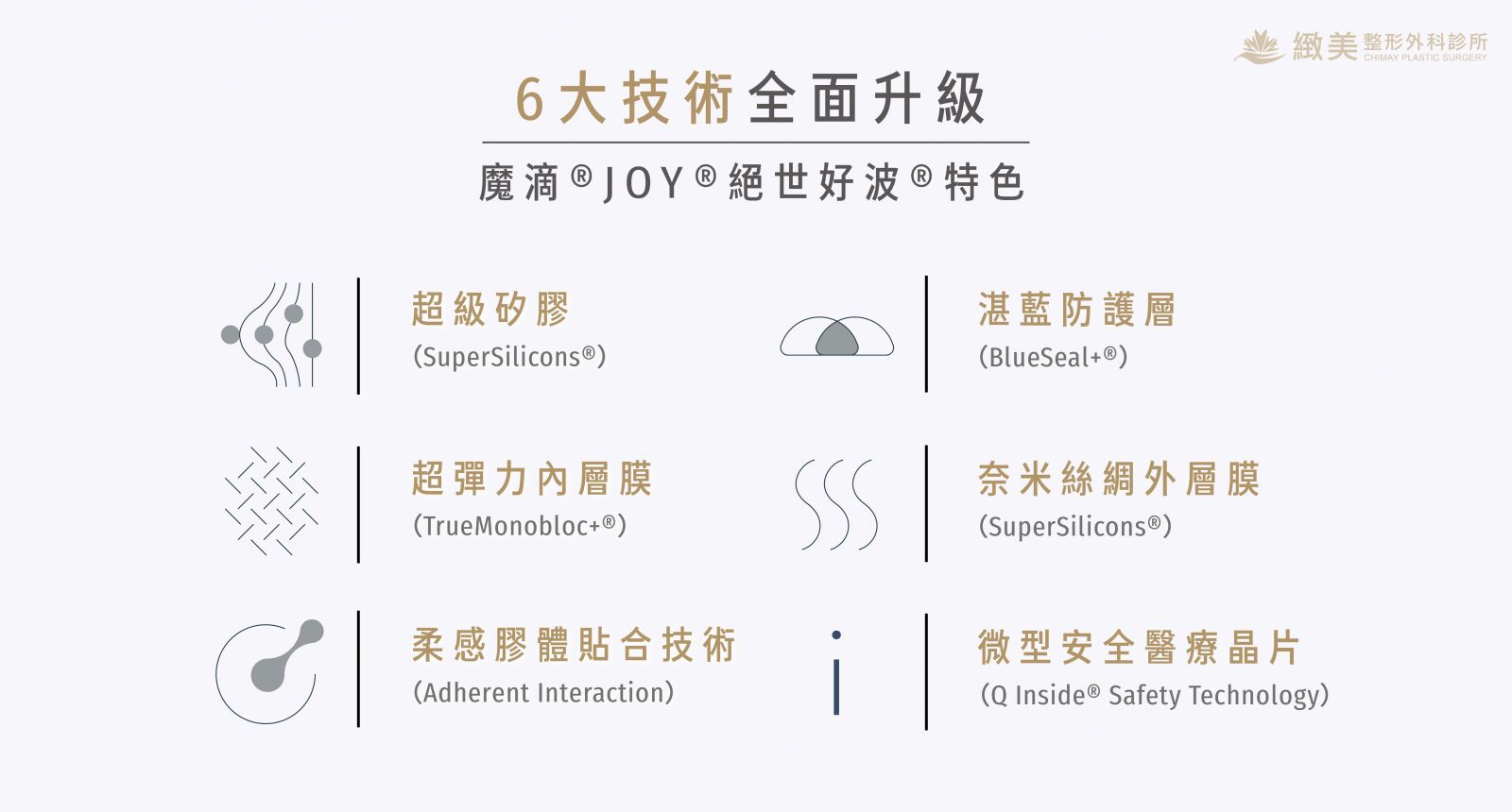 魔滴2.0採用SuperSilicones® 超級矽膠是一種全新矽膠專利配方,用於魔滴®JOY乳房植入物的原料,具有比市面上其他乳房植入物擁有更好的延展力,使產品柔韌不易破裂,更符合人體工學,提升整體柔軟觸感及天生脂感律動。